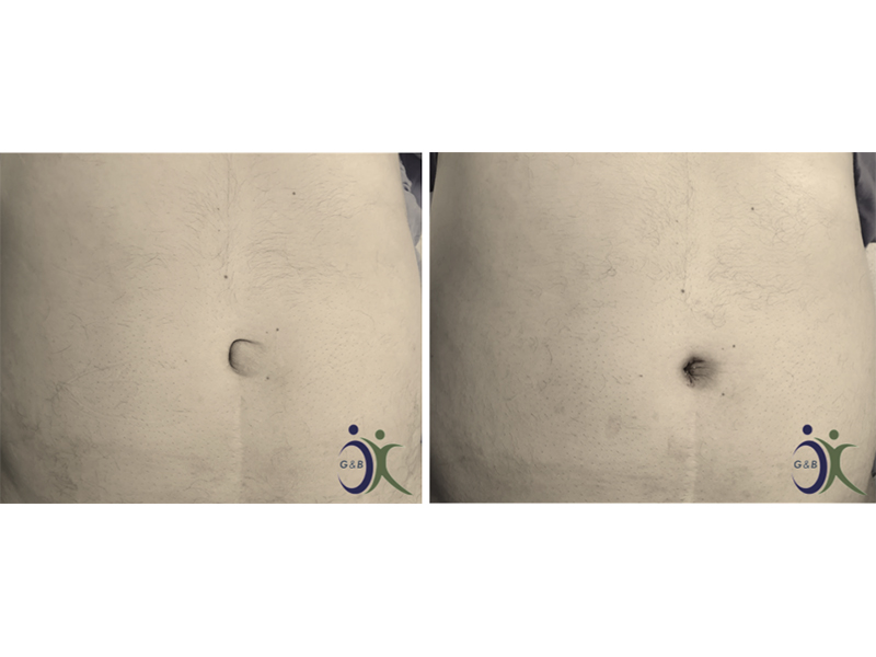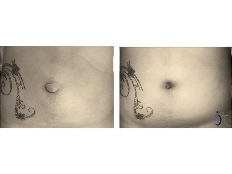 Una hernia umbilical se presenta cuando hay una salida de tejido blando como el intestino, o tejido adiposo a través del ombligo. Las hernias deben ser reparadas cuando causen molestias debido al riesgo de una complicación.